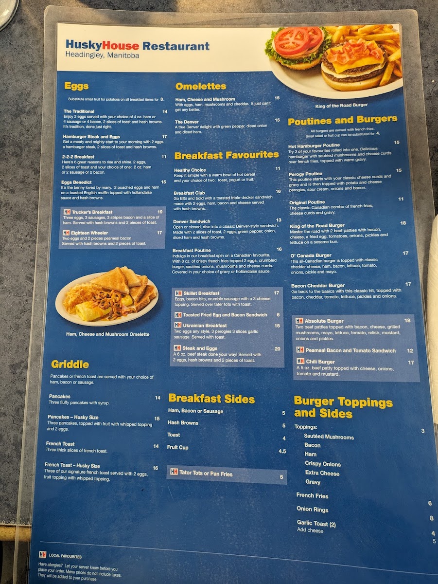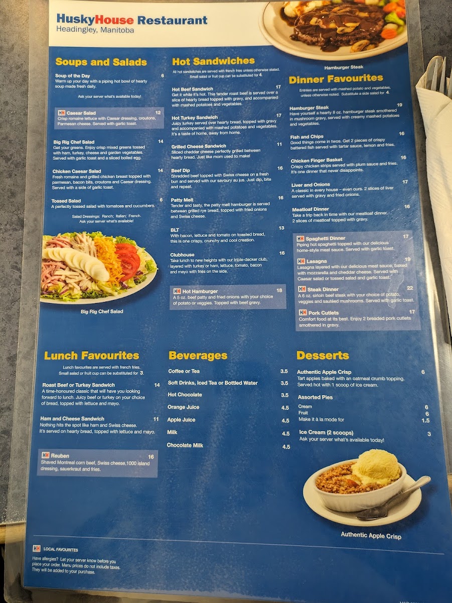 Overall, the Husky House menu reflects the spirit of Canadian roadside dining: straightforward, generous, and made to please.